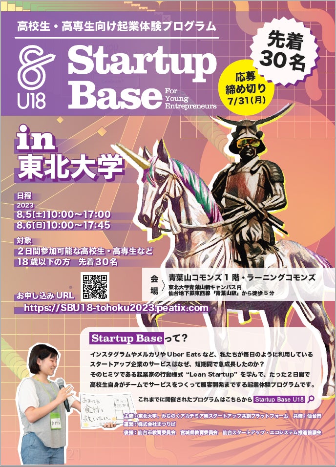 共催:仙台市 運営:StartupBaseU18(株式会社まつりば)