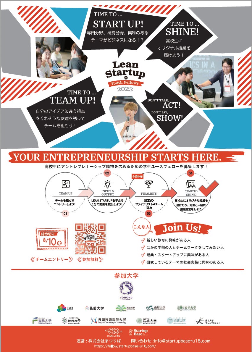 後援:仙台市教育委員会、宮城県教育委員会、仙台スタートアップエコシステム推進協議会